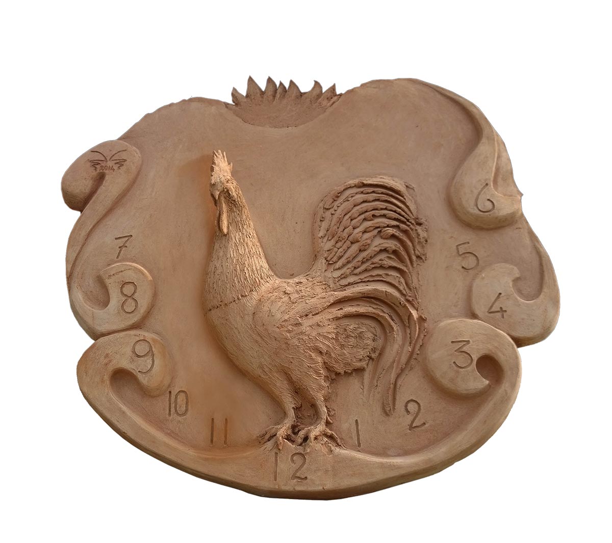 meridiana, Impruneta terracotta wall ornament, depicting a rooster on